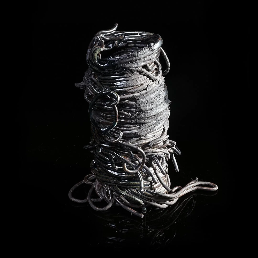 Works in the Eve series would ultimately employ two different blends of black clays, two different engobes, about six different high and low temp glazes., along with black grogs, metal filings, and mineral ‘sprinkles’…